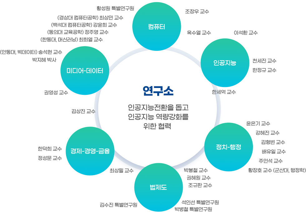 주요 구성원, 기능 및 사업 DONG-A UNIVERSITY 메인으로 이동 주요 구성원, 기능 및 사업 연구소 소개 주요 구성원, 기능 및 사업 커뮤니티 닫기 주요 구성원 주요 구성원 주요 연구영역 및 사업 연구소의 공헌 닫기 주요 구성원, 기능 및 사업 주요 구성원, 기능 및 사업 주요 구성원 주요 연구영역 및 사업 연구소의 공헌 주요 구성원 SNS 목록열기 FACEBOOK 공유하기 TWITTER 공유하기 BLOG 공유하기 SNS 목록닫기 인쇄 url 복사 AI+X(인공지능의 융합 및 확산) 시대에 본격적으로 대응하여 인공지능과 다양한 학문분야 간 융합 및 연계의 기반에서 사업의 발굴과 적용을 통한 문제해결과 가치창출에 기여함.