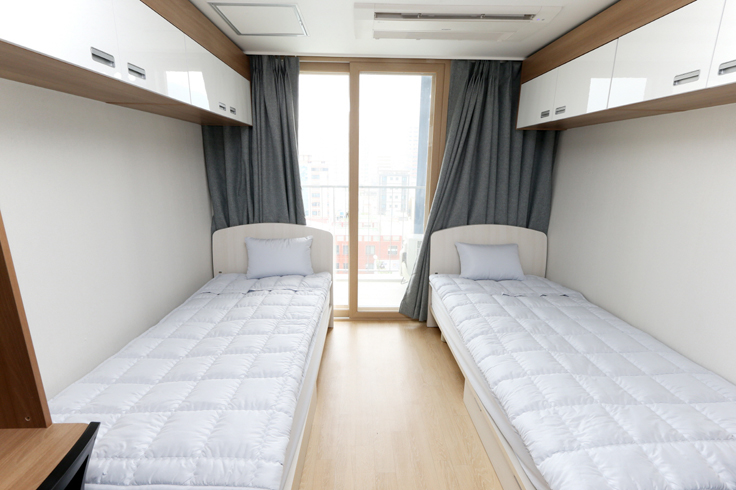 Hanlim Dormitory, which opened its doors in 2002, is a modern facility that can accommodate up to 1,046 students. It offers a comfortable living environment with double occupancy rooms. Each student room is equipped with a personal desk, chair, bookshelf, bed, shoe rack, wardrobe, hanger, telephone, and LAN connection. In addition, each room's private bathroom is equipped with a toilet, sink, and shower. On each floor, there are shared bathrooms, washrooms, and lounges. In the basement, you'll find additional facilities including a dining area, study rooms, an internet cafe, a fitness center, meeting rooms, laundry, and ironing rooms. These facilities are designed to provide a pleasant and comfortable university life